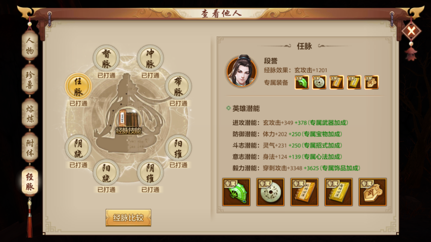 峨眉筋脉:属性 体力 命中 身法